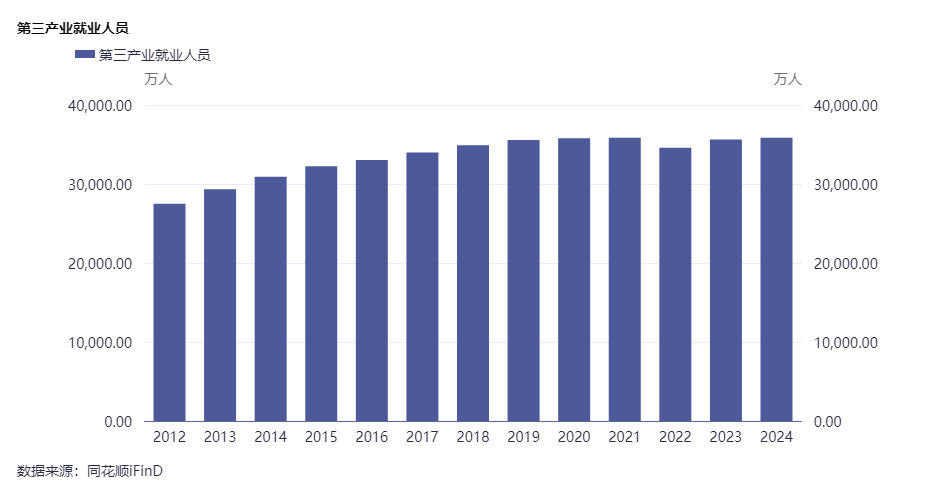 2024年末,第三产业就业人员为35866万人,比2020年末增加60万人;占全国就业人员的比重为48.8%,提高1.1个百分点。