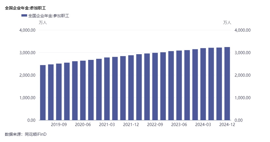 从职工福利上看,2024年末全国参加企业年金职工人数为3242万人,企业年金积累基金规模达36422亿元,分别比2020年末增长19.3%和61.9%。