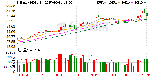 近两日,工业富联股价有所反弹,11月26日该股报收于58.93元/股,涨4.1%。