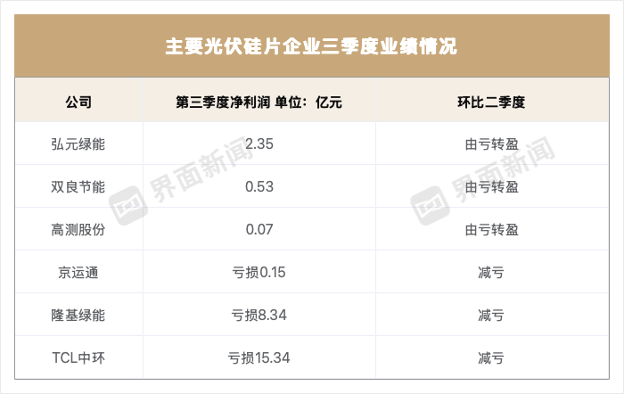 新特能源(01799.HK)和通威股份(600438.SH)仍在亏损,前者三季度亏损2.7亿元,后者亏损3.15亿元。