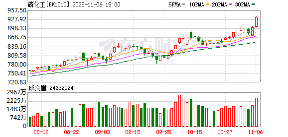 消息面上,根据百川盈孚,近期,磷化工原料黄磷连续上涨。11月5日,国内黄磷现货2.22万元/吨,较前一交易日每吨上涨264元,较上月同期上涨2.36%。