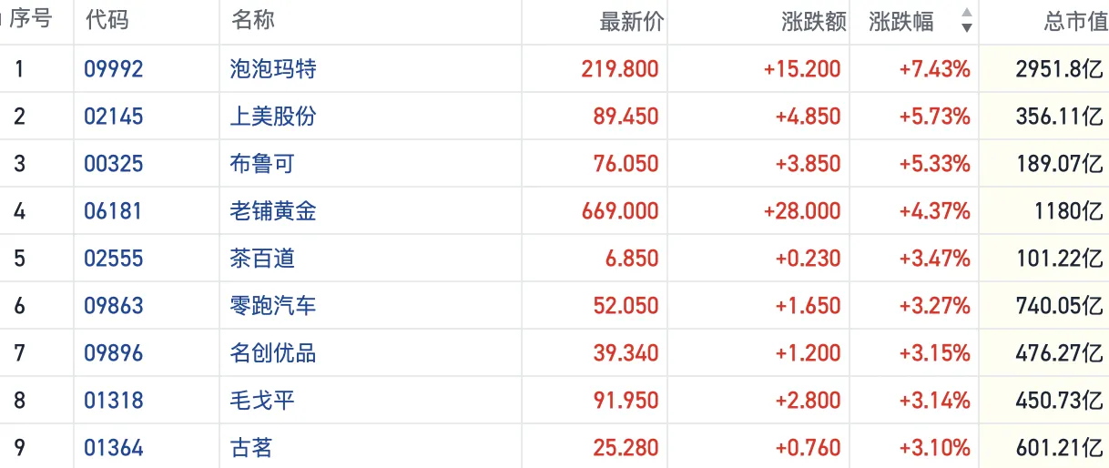 政策端继续发力提振 港股新消费概念走强多股涨超5%
