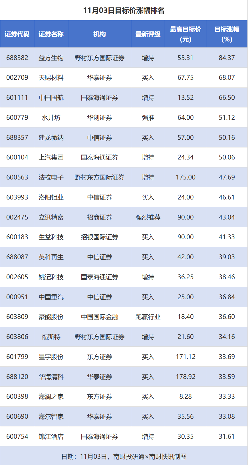 益方生物目标价涨幅超84% 口子窖、舍得酒业评级被调低|券商评级观察